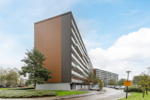 Slaapkamer I is afgewerkt met pvc vloer in lichtbruine houtkleur en glad gestucte wanden. Deze is voorzien van een zeer ruime mat zwarte houten inbouwkast over de gehele lengte van de slaapkamer. Verder is de slaapkamer voorzien van led spots, draaikiepraam met op maat gemaakte hor.